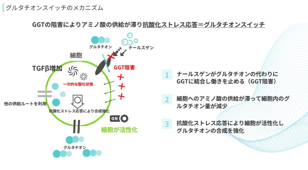 1.ナールスゲンがグルタチオンの代わりにGGTに結合し働きを止める(GGT阻害)
